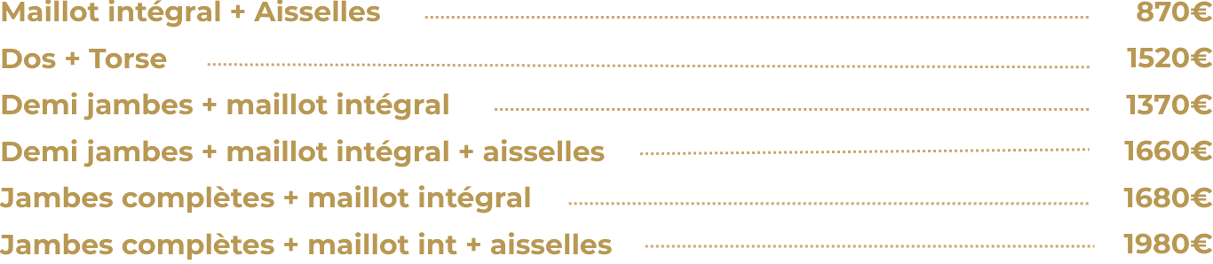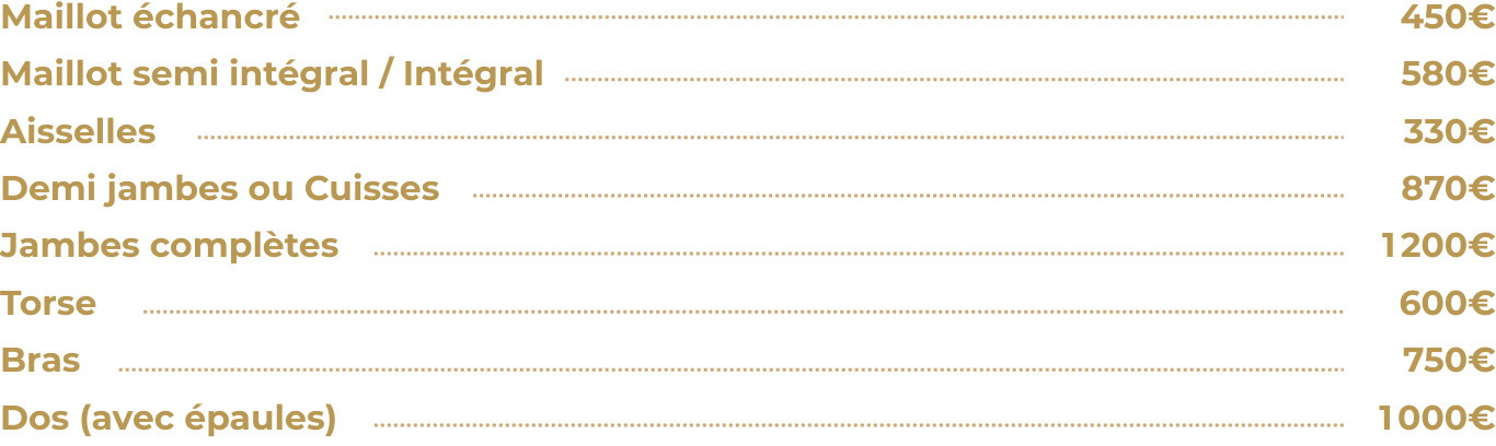 Demi-jambes + maillot intégral + aisselles • 1 660 €