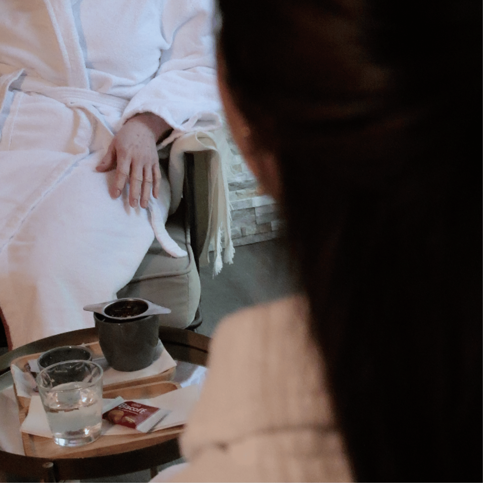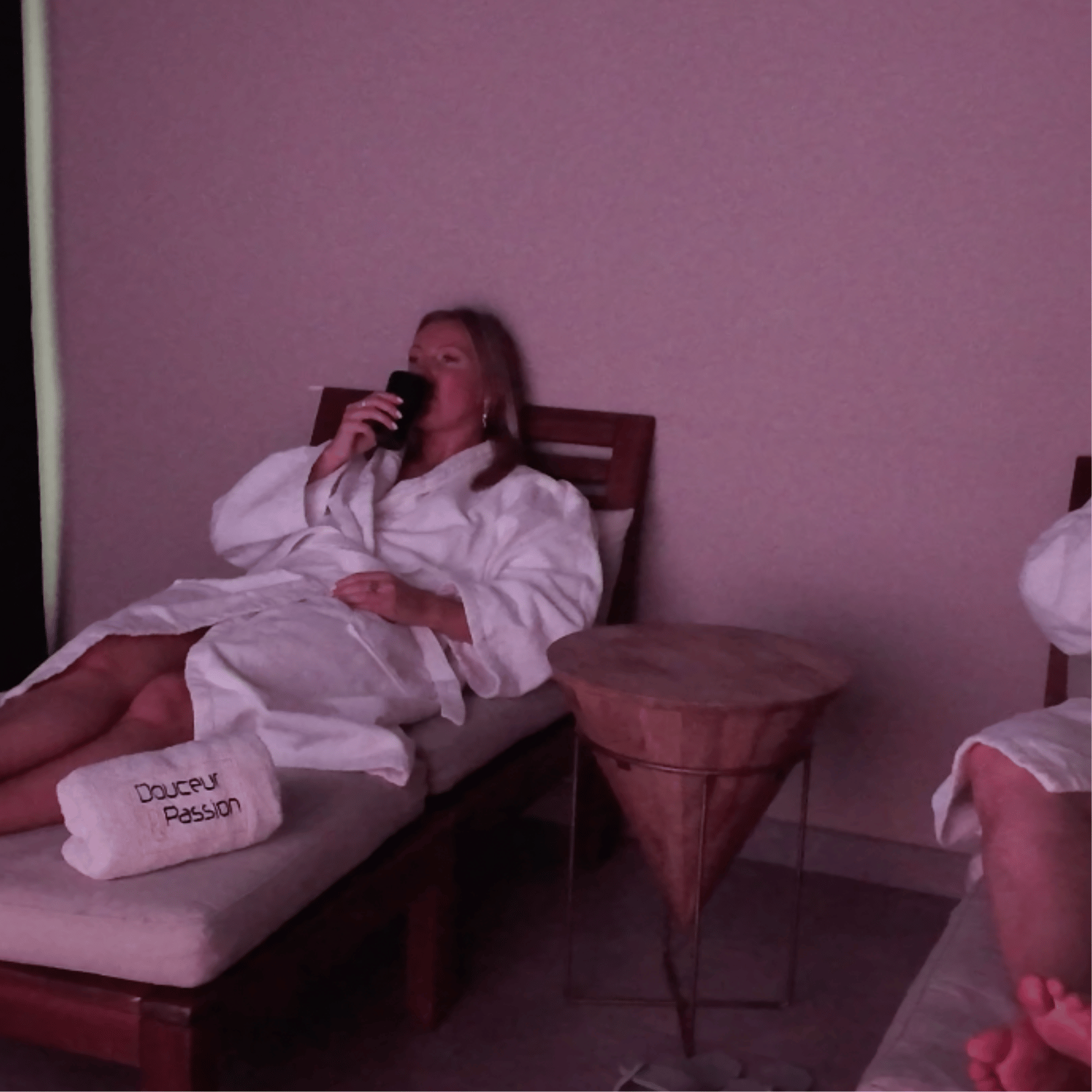 Chez Douceur & Passion, chaque détail est pensé pour que votre expérience soit aussi agréable que mémorable. Des peignoirs douillets, des mules confortables et des espaces de change équipés de tout le nécessaire prolongent le soin dans le confort absolu. Votre moment débute par une boisson d’accueil et s’achève en tisanerie, autour d’une infusion ou d’une eau délicatement parfumée.